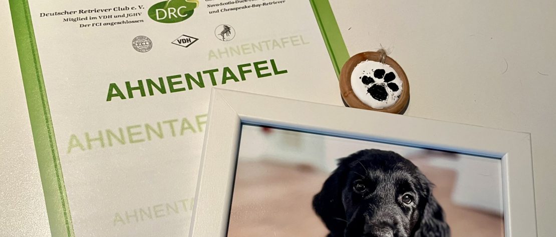Wie schon meine Oma, Mama und Tante habe auch ich eine richtig schicke Ahnentafel bekommen. Ich kann zwar diesem Zettel nichts abgewinnen, doch für Mama Mareike und meine Menschen scheint der wichtig zu sein. Am wichtigsten ist aber wohl, dass meine Ahnentafel sich sehen lassen kann!