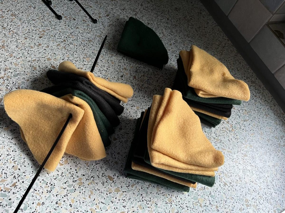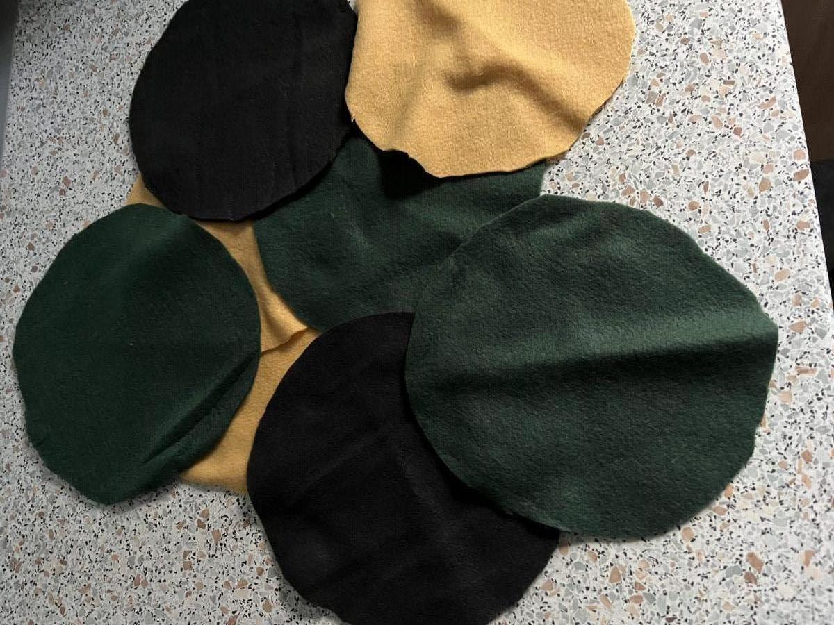 Aus den Fleecedecken schneidet man 32 Kreise mit ca. 20 cm Durchmesser. Je nach Größe des Hundes (oder für Katzen) kann man die Kreise auch kleiner machen.