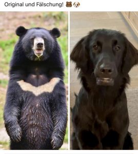 Dass heranwachsende Flat-coated Retriever mitunter nicht nur etwas schief im Körperbau sind (Ginger war wochenlang vorn „tiefergelegt“ und hatte ein entsprechend wackliges Gangbild), sondern auch das Fell so seine Zeit braucht, bis alles da sitzt, wo es hingehört, ist nicht überraschend.