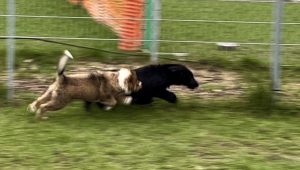 Danach durfte ich ein paar Mal „Sit“, „Down“, „Decke“ und „Lauf“ machen (kenn ich ja alles schon von zuhause) und dann ging die Party plötzlich richtig los! Alle Mini-Vierbeiner durften nach Herzenslust miteinander spielen! Da musste man mich nicht zweimal bitten!