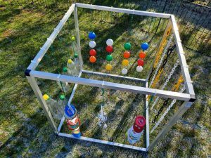 Leider darf meine Tante nicht mit mir zusammen in den Garten, da sie offenbar denkt, dort gelten die Indoor-Spielregeln nicht und sie kann mit mir machen, was sie will. Weit gefehlt! Unsere Menschen werden immer richtig böse, wenn sie auf mich zustürzt. Ich erschrecke mich dann auch arg, denn eigentlich ist Enya ja ganz nett… Naja, mit Michaela kann ich im Garten auch ein bisschen Spaß haben.