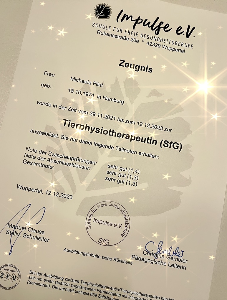 – Studium der Tierphysiotherapie