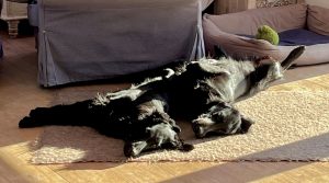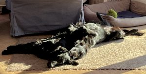 In den ersten Monaten konnte Enya mit dem Zwerg nichts anfangen, hat sich aber doch sehr lieb um Ginger gekümmert und viel mit ihr gespielt. Auch die erste Läufigkeit unseres Flohs und ihr offizielles körperliches Erwachsenwerden hat zu keinerlei ernsthaften Auseinandersetzungen geführt. Sie kabbeln sich ab und an – insbesondere im Garten – und Enya versucht immer wieder, unser Duracellhündchen zu stoppen. Bei Ginger gibt es nur an oder aus!