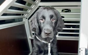Ich hab schon mitbekommen, dass Enya immer im Kofferraum in einer Box mitfährt – so ähnlich, wie meine Höhle im Wohnzimmer. Gestern durfte ich dann zum ersten Mal auch dort rein. Ganz allein! Frauchen hat mich erstmal einfach da sitzen lassen. Gemütlich ist es auf jeden Fall… Dann hat sie die Tür zu gemacht. Okay, da ich sie noch sehen konnte, kein Thema. Dann ging sogar noch die Klappe zu und ich saß allein im Dunklen. Aber durch das Fenster konnte ich Michaela noch erkennen. Also war ich ganz entspannt.